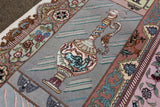 In the 20th century, the city of Tabriz established itself as a powerhouse in fine Persian rug production. Tabriz rugs are predominately woven with the Senneh knotting technique with fine virgin wool and natural silk as the preferred choice of materials. Tabriz rugs have the highest range of designs and colours. The diverse range of ornaments vary from Shah-Abbasi motifs, continuous rapport motifs (including Mahi and Botteh motifs), old nomad patterns, and hunting and tree motifs.