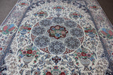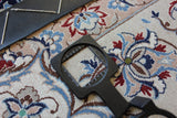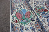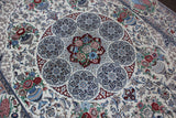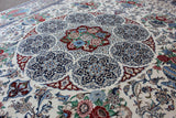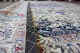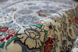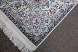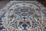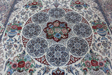 A favorite of many collectors, Nains are precise, delicate and can be stunningly beautiful. Its talented master weavers may take several years to complete a rug. These elegant rugs are produced in and around the city of Nain, 150 km east of the enchanted city of Isfahan.Though very similar in appearance to Isfahans, they are easily identifiable because of their distinctive color scheme and smooth, closely clipped pile. Nain rugs usually feature an overall arabesque and curvilinear floral pattern of blues against a warm beige or ivory background, with touches of greens and whites. Over 300 to 500 knots per square inch are not uncommon in Nains. Excellent grades of wool and silk are used on foundations of fine cotton or silk.