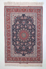 Among the finest handmade rugs ever made, Isfahan (Esfahan) rugs are the pinnacle of the Persian rug. In an enchanted city, renowned for its taste and finesse, these rugs are of great delicacy and utmost intricacy. The city of Isfahan holds pride of place in the Persian rug industry because of its rich history and reputation dating back to the 16th century. Most Isfahan rugs are finely detailed in wool and silk, often woven on a base of pure silk. Until the middle of the 20th century colours were mostly bold with red and blue motifs on the ubiquitous beige. Still, at the sight of curvilinear vines snaking over an elegant field around an exquisite medallion, the word 'Isfahan' tends to spring to one's mind. Patterns include pictorial and tree-of-life schemes, as well as the Shah Abbas field with its floral vines.