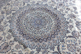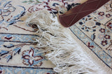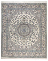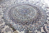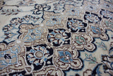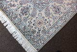 A favorite of many collectors, Nains are precise, delicate and can be stunningly beautiful. Its talented master weavers may take several years to complete a rug. These elegant rugs are produced in and around the city of Nain, 150 km east of the enchanted city of Isfahan.Though very similar in appearance to Isfahans, they are easily identifiable because of their distinctive color scheme and smooth, closely clipped pile. Nain rugs usually feature an overall arabesque and curvilinear floral pattern of blues against a warm beige or ivory background, with touches of greens and whites. Over 300 to 500 knots per square inch are not uncommon in Nains. Excellent grades of wool and silk are used on foundations of fine cotton or silk.