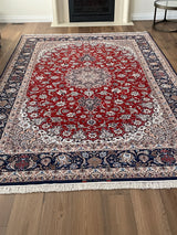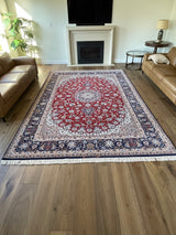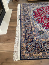Among the finest handmade rugs ever made, Isfahan (Esfahan) rugs are the pinnacle of the Persian rug. In an enchanted city, renowned for its taste and finesse, these rugs are of great delicacy and utmost intricacy. The city of Isfahan holds pride of place in the Persian rug industry because of its rich history and reputation dating back to the 16th century. Most Isfahan rugs are finely detailed in wool and silk, often woven on a base of pure silk. Until the middle of the 20th century colours were mostly bold with red and blue motifs on the ubiquitous beige. Still, at the sight of curvilinear vines snaking over an elegant field around an exquisite medallion, the word 'Isfahan' tends to spring to one's mind. Patterns include pictorial and tree-of-life schemes and the Shah Abbas field with its floral vines.