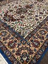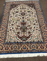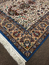Among the finest handmade rugs ever made, Isfahan (Esfahan) rugs are the pinnacle of Persian craftsmanship. In an enchanted city, renowned for its taste and finesse, these rugs are of great delicacy and utmost intricacy. The city of Isfahan holds a prominent place in the Persian rug industry due to its rich history and reputation, which dates back to the 16th century. Most Isfahan rugs are finely detailed in wool and silk, often woven on a base of pure silk. Until the middle of the 20th century colours were mostly bold with red and blue motifs on the ubiquitous beige. Still, at the sight of curvilinear vines snaking over an elegant field around an exquisite medallion, the word 'Isfahan' tends to spring to one's mind. Patterns include pictorial and tree-of-life schemes, as well as the Shah Abbas field with floral vines.