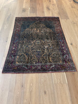 This antique silk Kashan prayer rug is a masterpiece of late-19th-century Persian weaving, representing the refinement and spiritual grace that made Kashan one of Persia’s most celebrated silk-weaving centers.