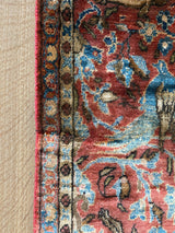 Overall: Fair condition for age; the silk is fragile and brittle, typical of fine 19th-century Kashan silk rugs.