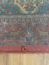 The rug is stored in a custom protective bag to preserve its integrity and prevent further aging.